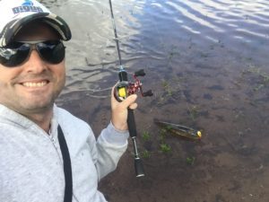 Los equipos que utilizamos fueron de la marca Biguá que gentilmente nos facilitó la firma Bermon, el CM200 es un reel de perfil bajo que lanza perfectamente bien los señuelos pequeños y tiene la «polenta» necesaria para trabajar solo «a manija»cuando es requerido, con un muy buen freno, la caña utilizada fue una Biguá Contoid de 6 pies, con una potencia de 17 libras, esta es la segunda vez que la utilizamos y hemos cobrado muy buenos dorados con la misma, el señuelo del día fue el «eterno» Storm Subwart 7, y el paseante del modelo «Cardumen» de Bigua, una linea de señuelos a los que les vamos a dedicar un articulo completo en el futuro.