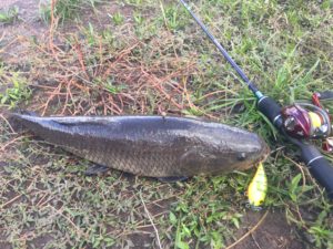 Hace unas semanas que habíamos comenzado a intentar con esta especie, ya que generalmente las primeras que atacan son grandes, y hoy lunes 3/9 no fue la excepción; la pesca se dió en un sector limpio con alrededor de 60 centímetros de agua, donde en dos horas de pesca capturamos dos tarariras de buen porte y perdimos algunos piques mas, incluido uno de un dorado que nos «sacó a pasear» literalmente y a los cincuenta metros lo vimos saltar para burlarse de que se soltaba del señuelo.