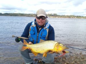 Aguas debajo de la represa, el río se encuentra con un caudal de agua excelente para la pesca de dorados, ya aparecido algunos de bien tamaño, y en estos días nuestro amigo y colaborador Pablo Koegle ha hecho las primeras pruebas con flycast con muy buenos resultados.