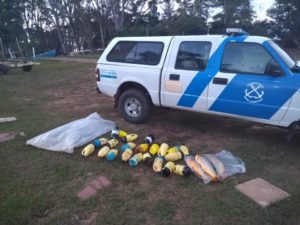 Con la colaboración de la Asociación de Guías de Pesca de Concordia se ha logrado retirar de la zona de Salto Chico, donde no se puede realizar la pesca artesanal y/o comercial, una gran cantidad de “tarros” y redes que hace tiempo castigan a los dorados en ese lugar tan importante para la pesca deportiva.