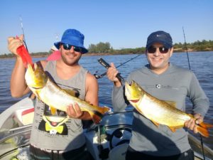 Los dorados también están muy activos, con una gran cantidad de ataques en cada jornada, en todas las modalidades; con carnada se están utilizando morenas y sabalines, en la modalidad baitcasting se utilizan señuelos “bananas” con paleta 1 o 2 y en algunas situaciones se puede pescar con artificiales de superficie.